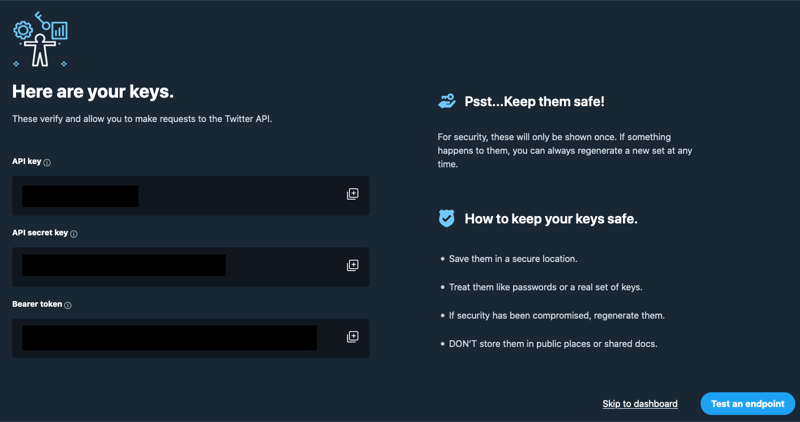 As you create it, you’ll be shown the API Key and API secret Key. You’ll need these later when configuring the plug-in in Curity.