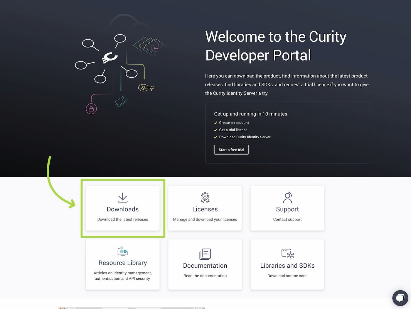 To obtain this, go to the Downloads area of the Curity Developer Portal as shown in the figure below: