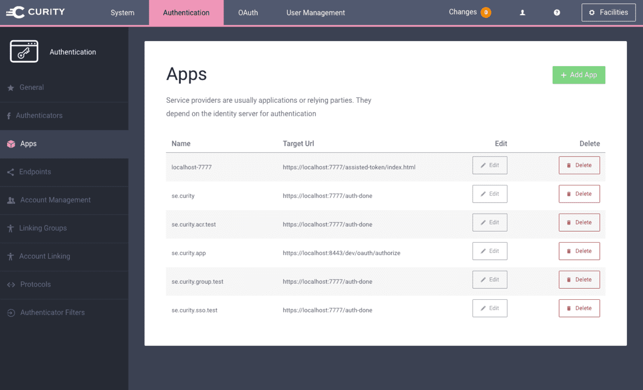 In the admin Web UI, a service provider is also referred to as an “app”. These are accessible from the Service Provider page under each authentication profile: